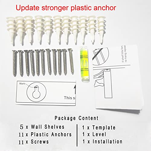 - ★ EASY INSTALLATION: The small floating wall mounted shelves came with a drill template and small level, Strong dry wall mounting anchors,screws and assembly instruction are all included. They were easy to install. It is super easy for you to install them onto your wall.