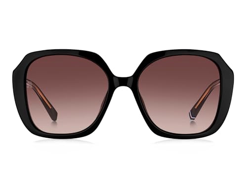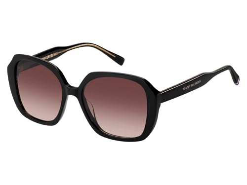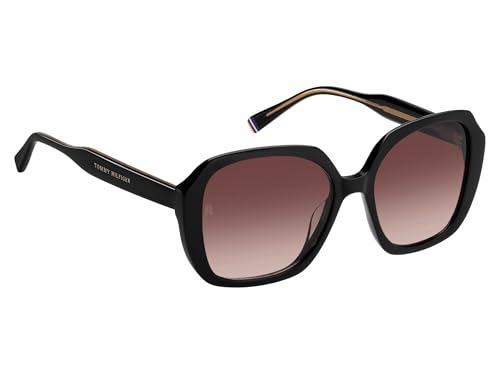 Happy Vision - نظارة شمسية مربعة للنساء من هابي فيجن بعدسات مظللة باللون البني واطار بلاستيكي اسود، مقاس 54 - تومي هيلفيجر