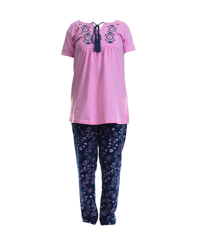 Hayat Kidswear - بيجامة كاجوال صيفية للنساء من حياة، قطعتين - مقاس M - بينك/ كحلي