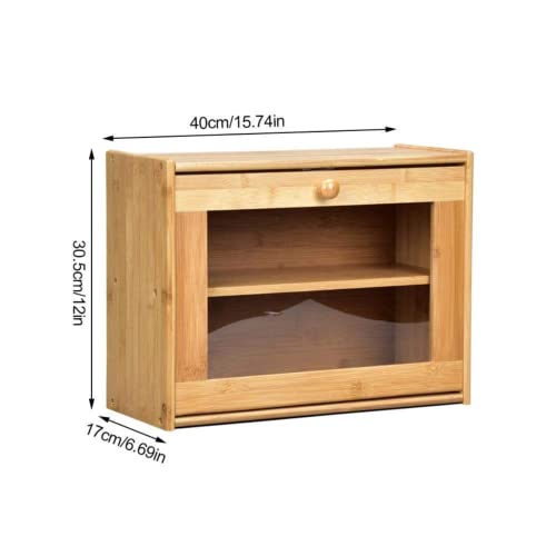 Hcosmy - Hcosmy Bread Box, 2-Layer Large-Capacity Countertop Fruit Storage with Transparent Window, Wooden Box Farmhouse Style Bread Bin with Window Suitable for Kitchen or Dining Table Naturally