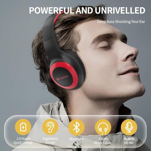 - Bluetooth Headphone – Celebrat – Model – A23 – Rechargeable – Built-in Mic – Radio – Card Input – Over Ear – Red