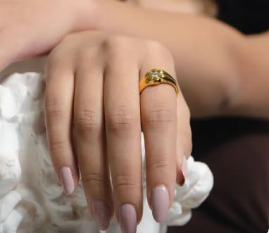 Generic - خاتم على شكل قلب من النحاس المطلي بالذهب، لمسة نهائية مطروقة، 20 ملم، مقاس 10
