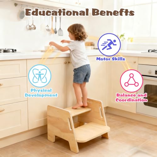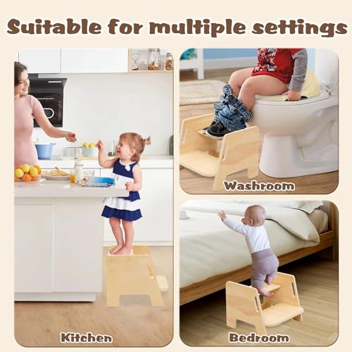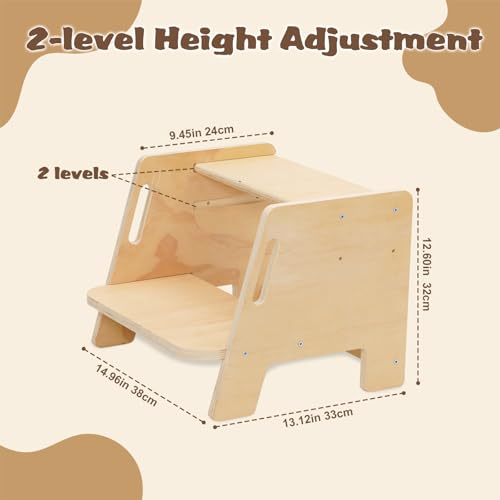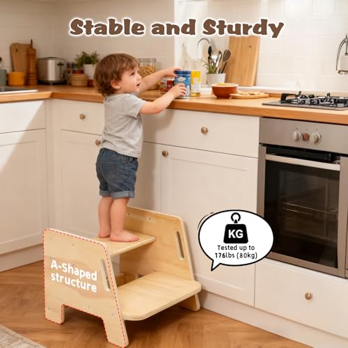Siairo - Heavy Duty 2 Step Stool for Kids & Adults, 80kg Capacity Toddler Step Stool with Non-Slip Treads & Handles, Sturdy Wooden Dual Height Stool for Bathroom Sink & Toilet Training, Easy Assembly