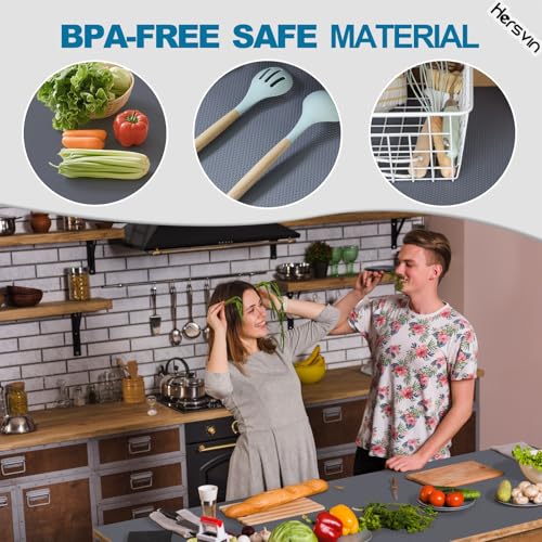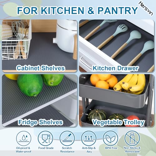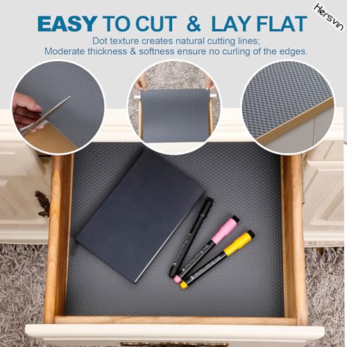 Hersvin - Hersvin Drawer Liners, 30cmx150cm Kitchen Shelf Liners Non-Adhesive Cabinet Mats Cupboard Protector EVA Plastic Lining Waterproof Washable Wipeable Anti-Slip Mats (Dark Grey/Dot)
