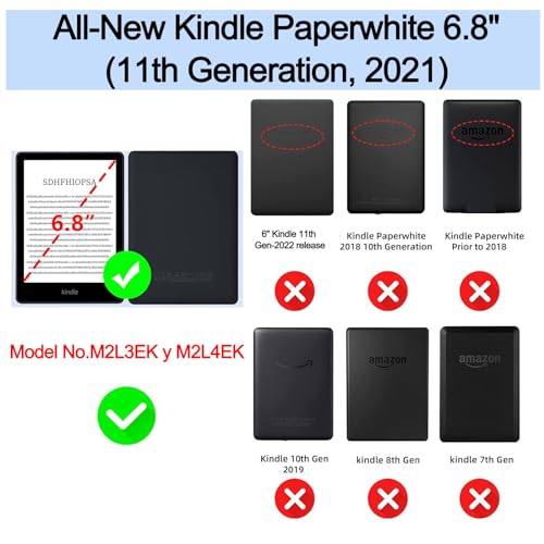 - ✅【Compatible Model】 The case is ONLY compatible with Kindle Paperwhite 11th Generation-2021 Case 6.8 inch, Model No.M2L3EK and M2L4EK. [Please check the bottom of the back of your Kindle for MODEL NO:****** before purchase.]