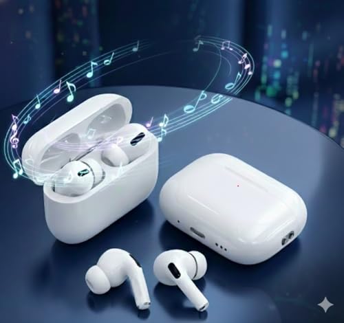 - تصميم لاسلكي: سماعات بلوتوث داخل الأذن مع علبة شحن أنيقة باللون الأبيض للاستخدام المريح والمحمول