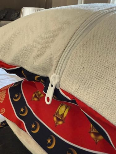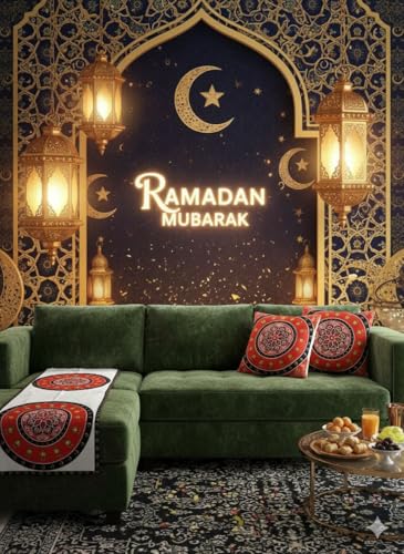 - RAMADAN DECORATIVE SET: High-quality linen table runner paired with 2 matching cushion covers, featuring elegant gold print designs perfect for festive Ramadan celebrations and home decoration