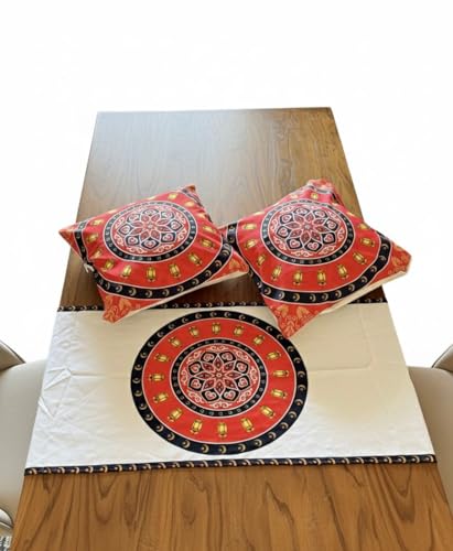 Generic - High Quality Ramadan Decorative Set, Linen Table Runner with 2 Cushion Covers, For decoration (A)