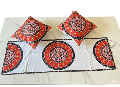 - COMPLETE SET: Includes one decorative table runner and two coordinating cushion covers with the same exquisite design for a cohesive and stylish decorative arrangement
