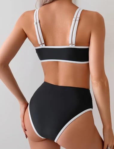 هنادي - بكيني قطعتين باللونين الأسود والأبيض - خامة ليكرا كورية عالية الجودة HN 6051, One Size