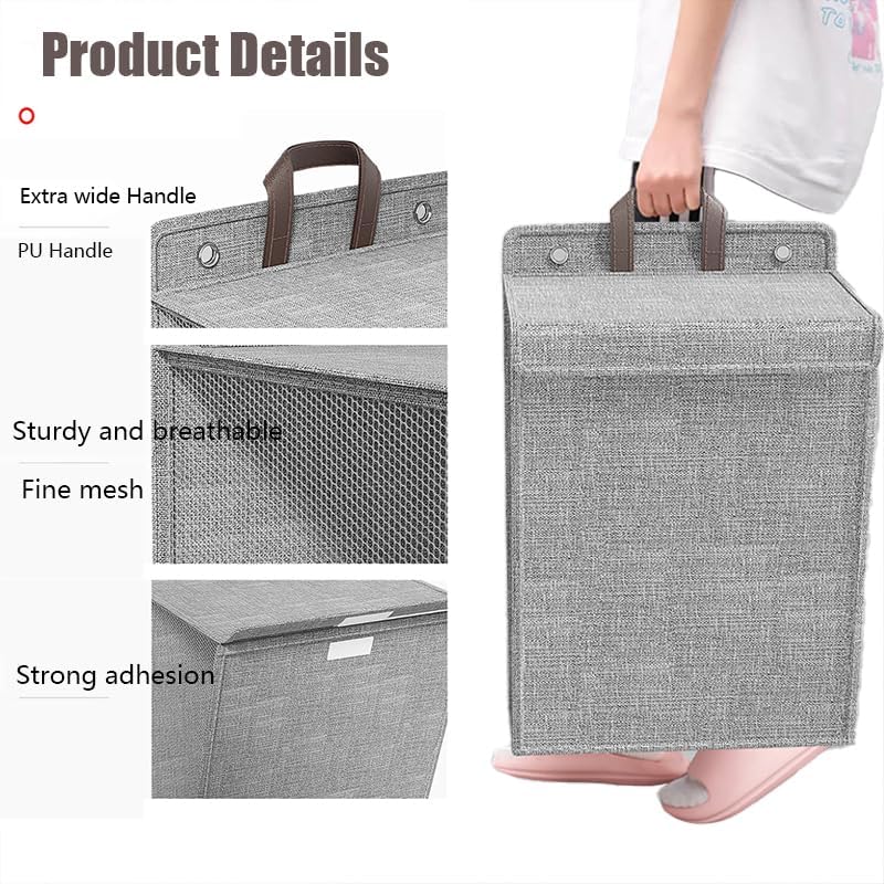 HNJZX - Collapsible Laundry Hamper with Lid, Wall Hanging Laundry Bag with 2 Sticky Hook, Storage Basket for Clothe and Toy Laundry Hamper Great for LaundryRoom Bathroom Bedroom Grey