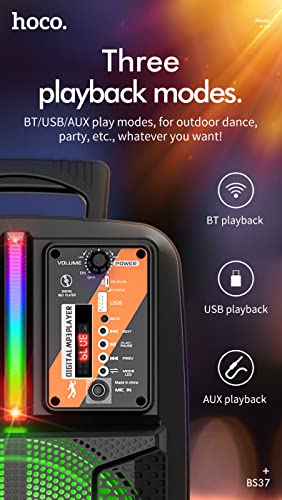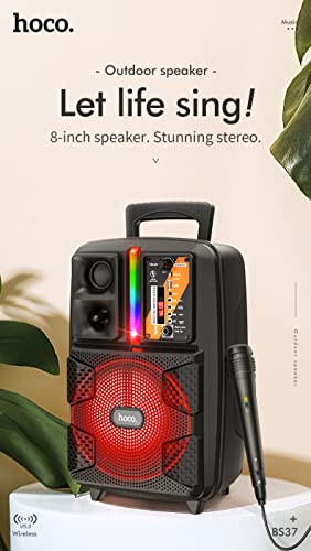 HOCO - Hoco BS37 - Dancer Outdoor Wireless Speaker, Wired Microphone, Bluetooth V5.0, Battery Capacity: 1800mAh, Music Time Up To: 3 Hours, Support Bluetooth, TWS, FM, USB, AUX - Black