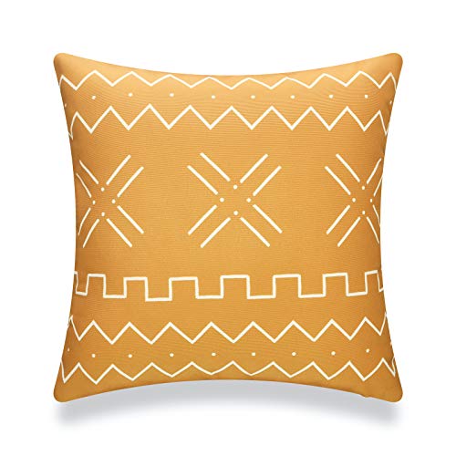 Hofdeco - Hofdeco Mudcloth Inspired Patio Indoor Outdoor Pillow Cover ONLY for Backyard, Couch, Sofa, Mustard Yellow Mudcloth Inspired Chevron, 18"x18"