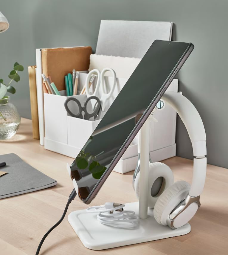 • تصميم قابل للتعديل: حامل تابلت ممتاز مع لوحة سطح من الفلين وإطار معدني أبيض، يتميز بحامل قابل لتعديل الارتفاع للحصول على زوايا رؤية مثالية