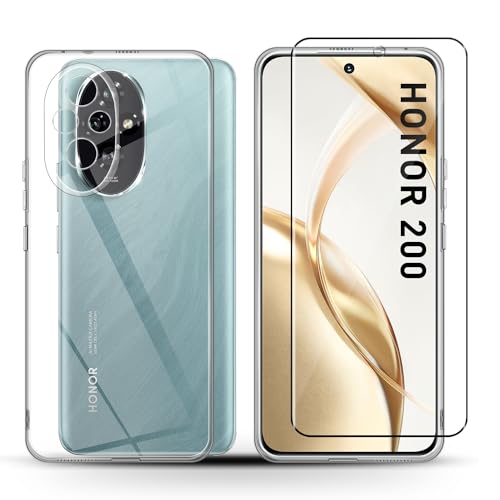 Holilo - حافظة هوليلو + 1 حافظة من الزجاج المقوى لهاتف هونر 200، حافظة حماية حريرية من البولي يوريثين الحراري بدرجة صلابة 9، حافظة حماية HD مضادة للخدش من جل السيليكون