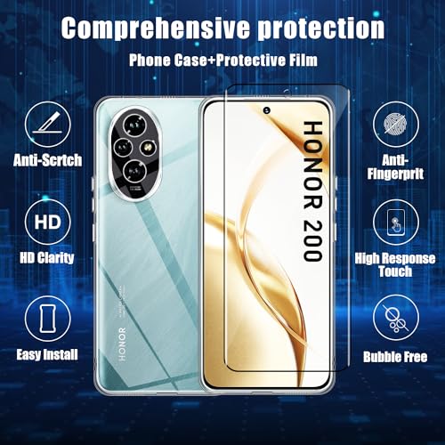 - 【التوافق】1 × واقي شاشة من الزجاج المقوى + 1 × حافظة سيليكون. مصمم للتوافق مع هونر 200، ويوفر أقصى قدر من الحماية للغطاء الخلفي وشاشة الهاتف.