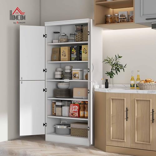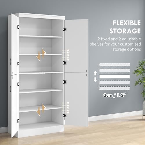 HOMCOM - HOMCOM 70" Kitchen Pantry Cabinet, Freestanding Kitchen Pantry Storage Cabinet with 4 Doors and 2 Adjustable Shelves, White
