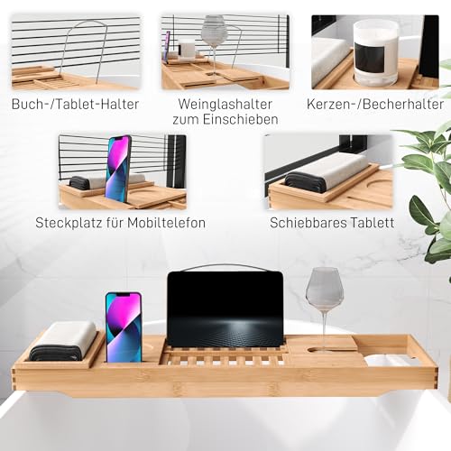 - ADJUSTABLE LENGTH - The length of the shelf is infinitely adjustable between 70-105cm, so it fits most bathtubs.