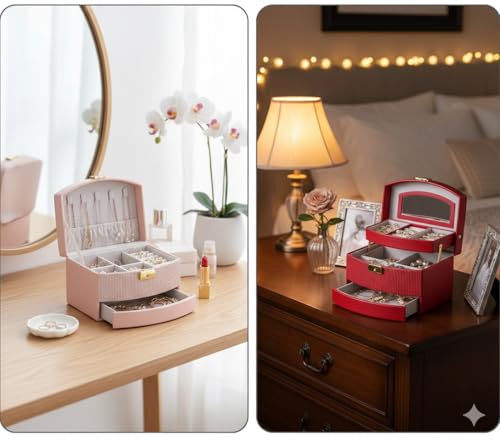 - Integrated Vanity Mirror: Equipped with a high-definition built-in mirror under the lid, allowing you to easily style and put on your jewelry for the perfect look every time.