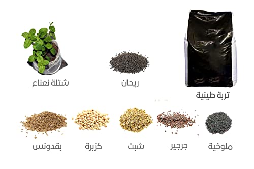 Generic - مجموعة الزراعة المنزلية، تربة طينية وشتلة نعناع وبذور ريحان شبت بقدونس كزبرة جرجير ملوخية