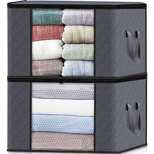- [Large Capacity]★Each storage container measures 19.61*13.66*10.83 inches/50 × 35 × 27.5 cm and has a capacity of 50L. There's plenty of space to hold your quilt, blanket, pillow, stuffed animals, out of season coats or other clothing.