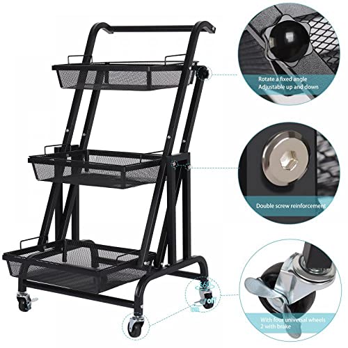 - Kitchen Folding Trolley Cart for Widely Application - This rolling cart is an expert for your household storage, you can use this trolley in your living room, bedroom, kitchen, bathroom, nursery, office or laundry, etc. Come with 3 tiers rack for more and organized storage. Such as vegetables, spices, snacks, tools, files, baby toys, stationery, and other household wares.