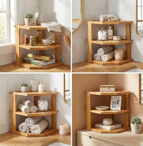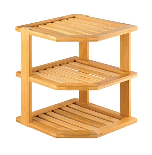 - STRONG & STURDY: This 3 tier space saving corner unit is made of eco friendly natural solid Engineered wood, which is a hard wearing and renewable wood.