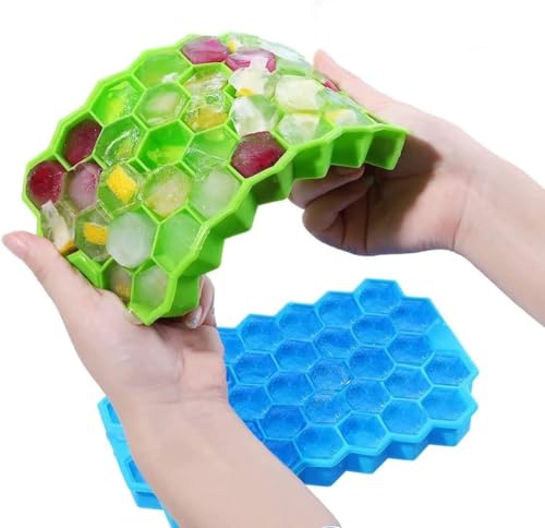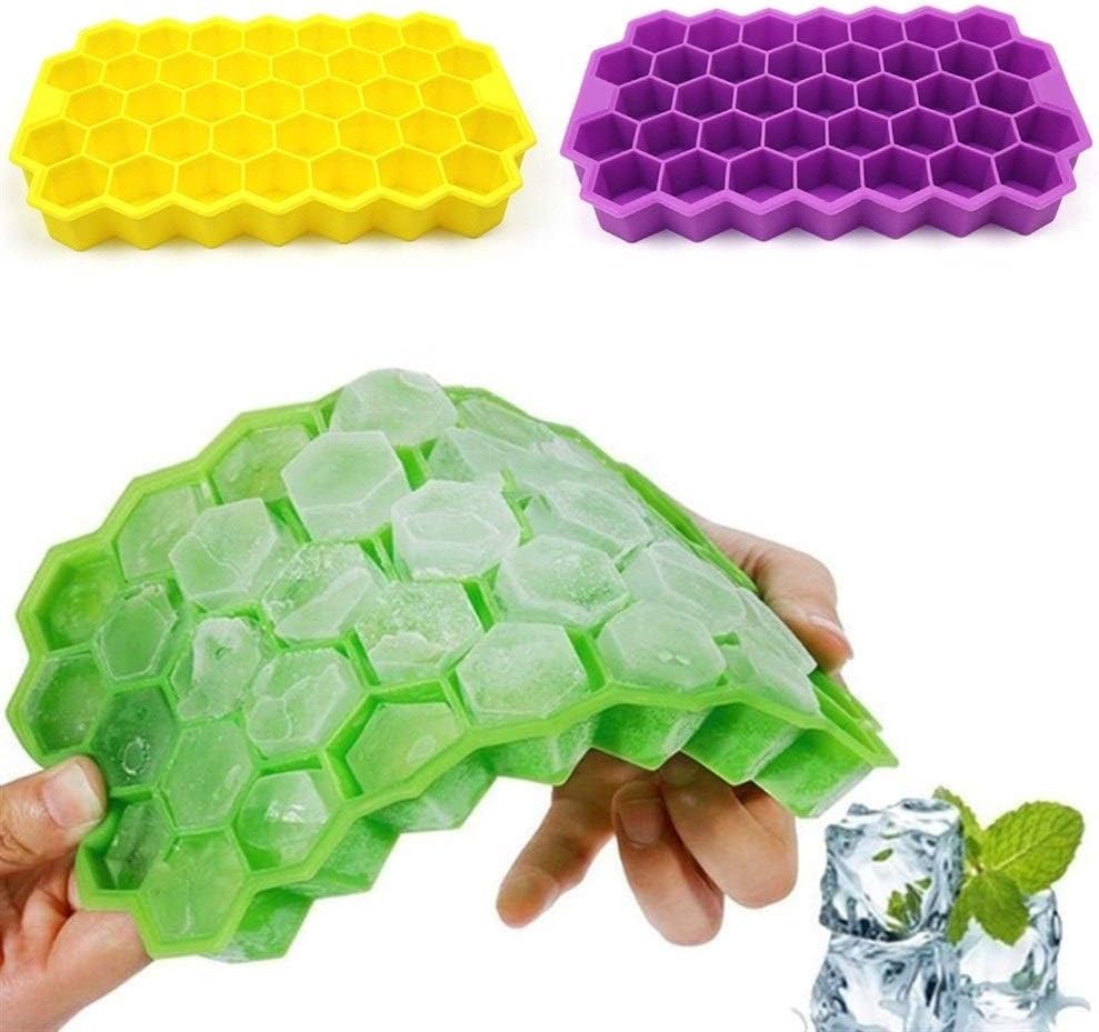 - تصميم مبتكر: صينية مكعبات الثلج المصنوعة من السيليكون على شكل قرص العسل تصنع مكعبات ثلج بشكل فريد بنمط سداسي أنيق.