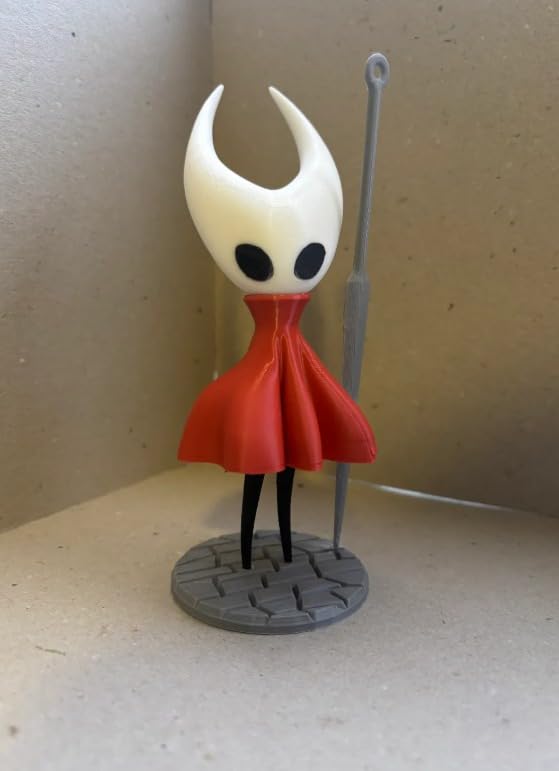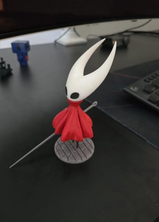 - CHARACTER DESIGN: Highly detailed 3D printed figure inspired by the iconic Hornet character, featuring a distinctive white horned mask, flowing red cloak, black legs, and signature needle weapon