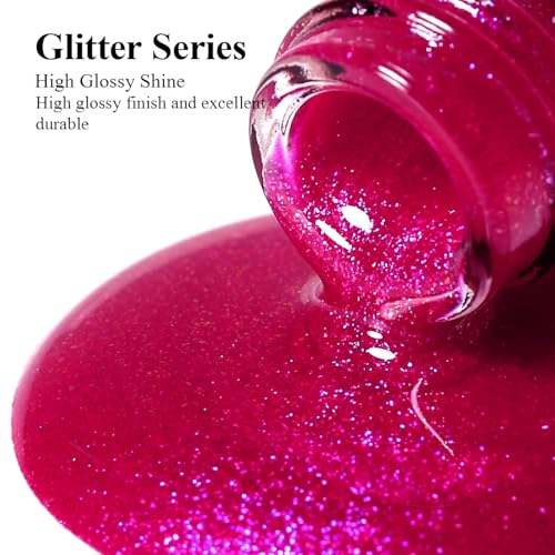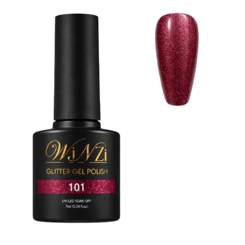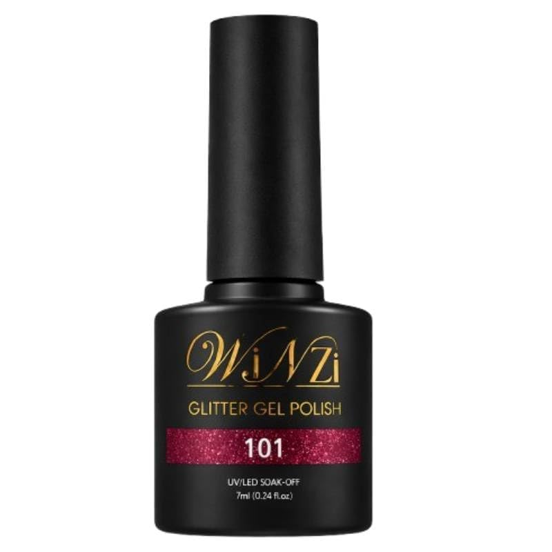 WINZI - Hot Pink Glitter Gel Nail Polish 7ML, Bright Glitter Color Soak Off UV LED Gel Polish, Smooth Application, Long Lasting Shine for Salon and DIY Nail Art Manicure (101)