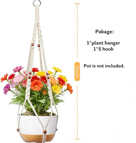 - يتضمن تصميم أوعية النباتات المعلقة المكرمية عقد معقدة وخرز خشبي، مما يضيف لمسة فنية إلى المظهر العام. جيدة لأولئك الذين يحبون النباتات ويريدون دمجها في ديكور منزلهم بطريقة مبتكرة وأنيقة.
