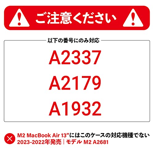 - [ملاحظة] جهاز ماك بوك اير القديم الذي تم إصداره قبل عام 2018 (الموديل: A1466/A1369) غير متوافق مع هذه الحافظة. *قد يختلف مقياس التصميم قليلاً حسب الطراز. يرجى التحقق مرة أخرى من أن جهاز ماك بوك الخاص بك هو الطراز المتوافق