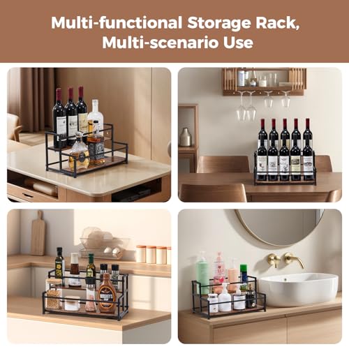 - A GREAT ADDITION: This lovely liquor organizer rack is made of a black metal frame and a rustic wood base. Its modern farmhouse look will brighten up any space! It's perfect for a bar, wine cabinet, kitchen countertop, coffee station, or cafe counter