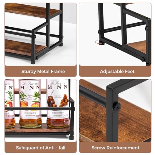 - STURDY & STABLE: The metal construction of the coffee bar organizer is strong enough, and the height between each tier is carefully designed to ensure that you can use the syrup pump while the bottle is on the rack