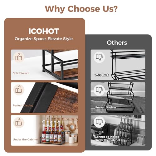 ICOHOT - Coffee Syrup Organizer, 2-Tier 10 Syrup Bottles Rack for Coffee Bar, Liquor Bottle Display Shelf Holder Bar Shelf Stand Countertop Rack for Syrup, Wine, Spice