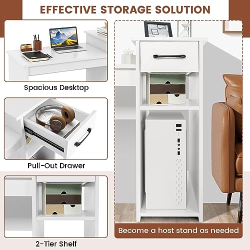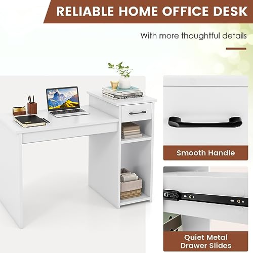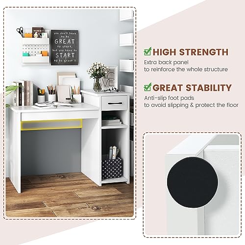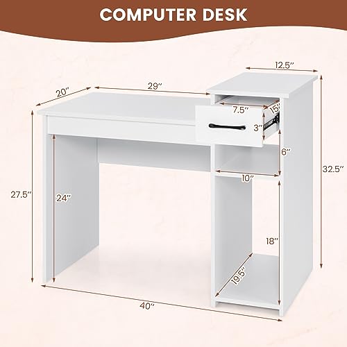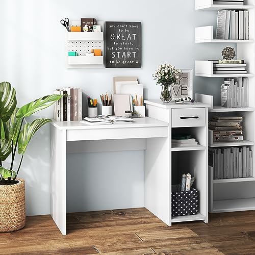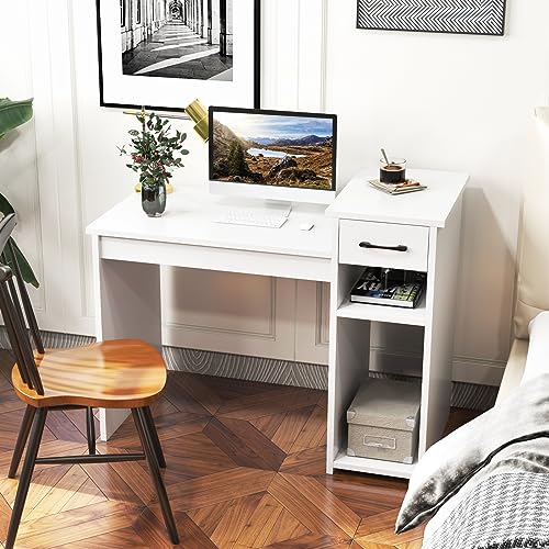 IFANNY - Computer Desk with Drawers, 40’’ Writing Desk with Storage Shelves, Wood Vanity Makeup Table, Small Desk for Bedroom, Living Room, Study, Home Office, Small Space, White (40'')