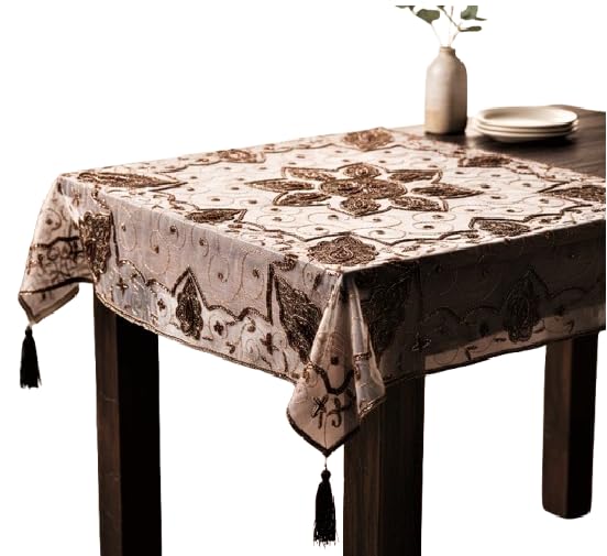 - تصميم تراثي هندي: مفرش طاولة مصنوع يدوياً بنقوش وزخارف هندية تقليدية فاخرة تضيف لمسة من الأناقة والفخامة لمنزلك