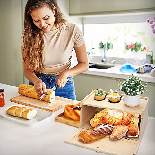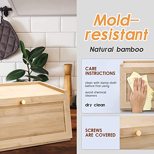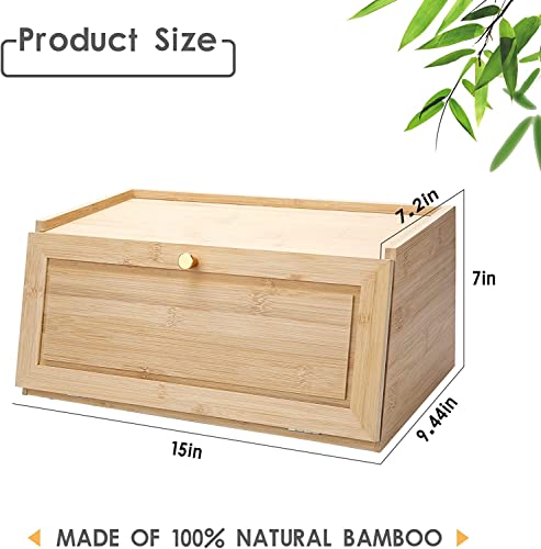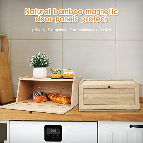- 🍞 100% NATURAL BAMBOO BREAD BOX: This bread box comes fully assembled, so you can start enjoying it right away! Crafted with natural bamboo, our bread box will add warm elegance to your kitchen décor while keeping your bread, cake, pastries, and other baked goods fresh! The natural bamboo color will add classic style to your countertop! making it an excellent choice for kitchen storage.