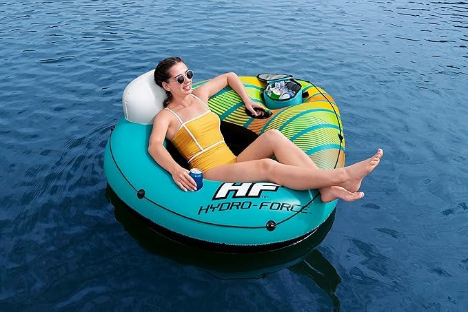 Generic - عوامة لحوض السباحة والبحيرة والنهر والشاطئ من بلاستيك PVC قابلة للنفخ مع حامل اكواب، لون برتقالي واصفر