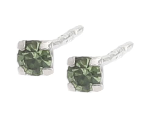 Generic - Insider Women's Small Size 925 Silver Solitaire Style Green Zircon Stone Stud Earrings - Silver - IT-ER-0272-2