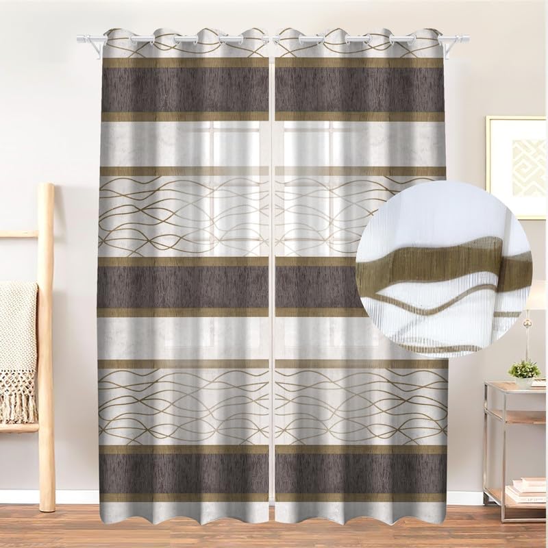 INtex CURTAINS HOUSE - ستارة كتان عصرية ومخططة بالعرض من قماش رقيق شبه شفاف وحلقات صلب انتكس كارتنز هاوس قطعة واحدة لون بني مقاس 2 متر عرض × 2.30 طول مُخطط