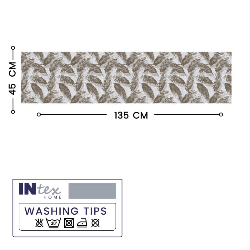INTex HOME - Linen Velvet Table Runner, Bella Leaf Pattern, Premium Soft Fabric, 45W×135L CM, Brown, Elegant Dining and Living Room Decor, Luxurious Protection for Daily Use and Special Occasions