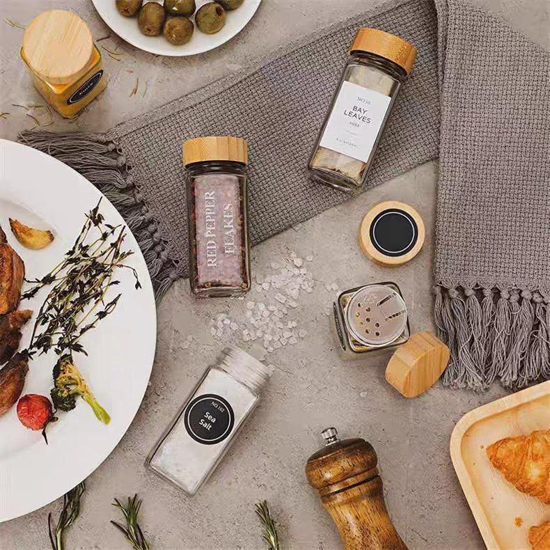 - يتضمن ملصقات توابل باللونين الأسود والأبيض لتناسب مظهر الزجاج.
