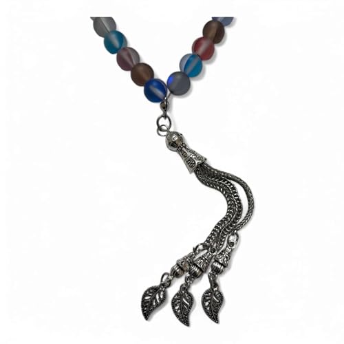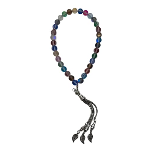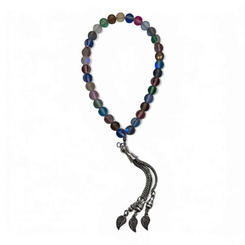 Generic - مسبحة صلاة اسلامية مع دلايات اوراق شجر معدنية، خرز زجاجي متعدد الالوان، تسبيح