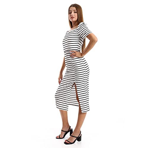 JAMILA - فستان كاجوال مخطط مع فتحات جانبية للنساء من جميلة