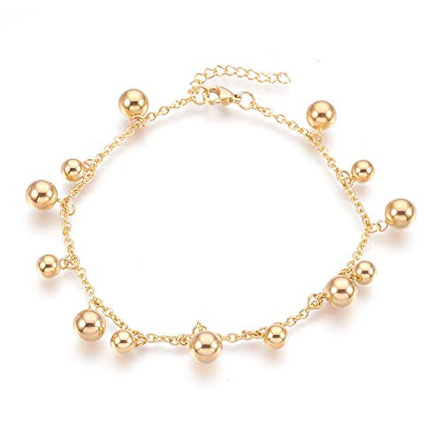 JAVAPEN - JAVAPEN TINYSAND Womens Charm Anklets with Balls, Vacuum Plating 304 Stainless Steel, Golden, 9-1/4 inches(23.5cm), 2.3mm of Beads, Stainless Steel, not known