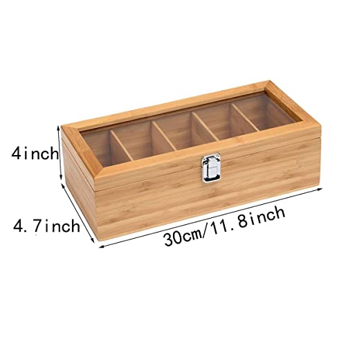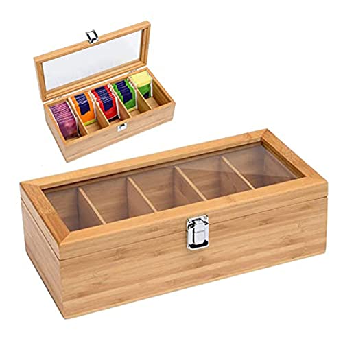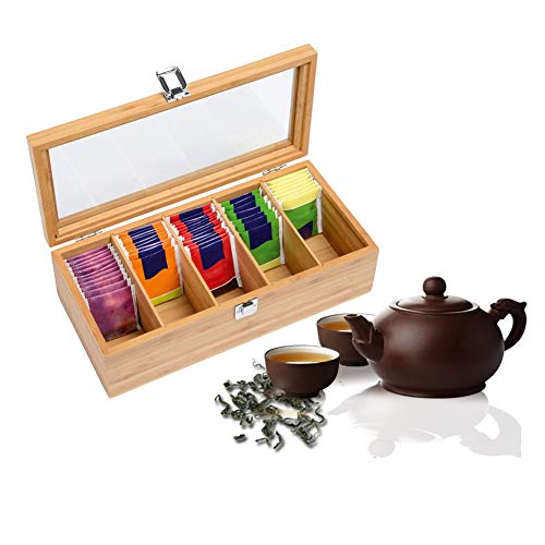 - 5-COMPARTMENT ORGANIZATION: This tea box features five deep compartments, providing ample space to organize and separate your different varieties of tea. It keeps your tea bags upright and tidy, transforming a cluttered cupboard into an elegant display.