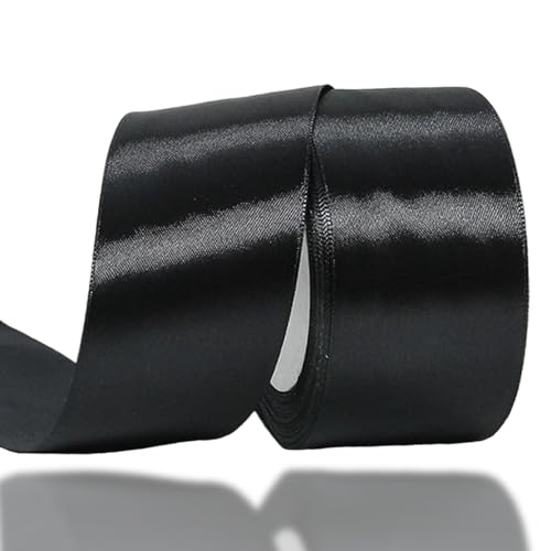 JAZZEEL - JAZZEEL Wide Black Satin Ribbon Roll, 50mm x 22m Thick Polyester Fabric for Bold Crafting, Cake Decoration, Hair Bows, Christmas Decor, and Elegant Wedding Car Decorations