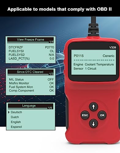 - [Car Scanner Diagnostic for Most Cars]- :Supports 9 OBDII/EOBD protocols, compatible with 98% of American gasoline models since1996 and European gasoline models since 2002.Supports 8 languages - English,German, Dutch, Spanish, French, Italian,Russian and Chinese. And this car code reader supports all OBD2 protocols: SAE J1850 PWM, SAE J1850 VPW, ISO9141-2, ISO14230-4 KWP, ISO14230-4 KWP, ISO15765-4 CAN, ISO15765-4 CAN, ISO15765-4 CAN , ISO15765-4 CAN.