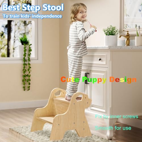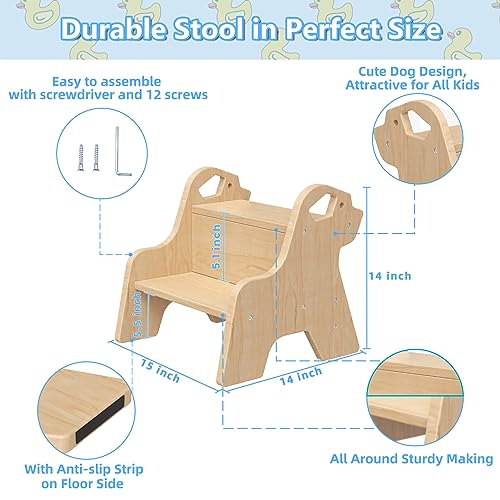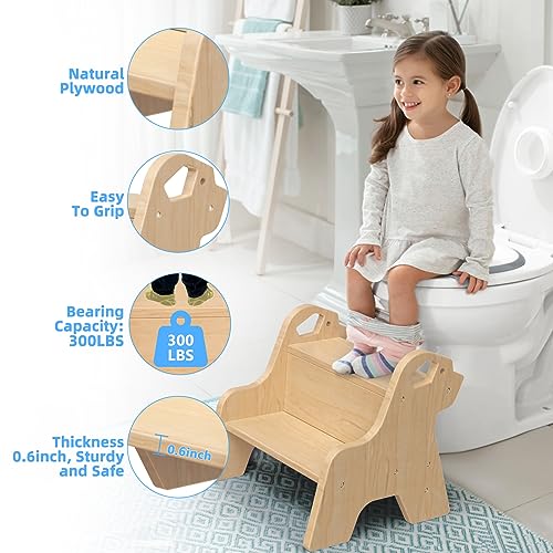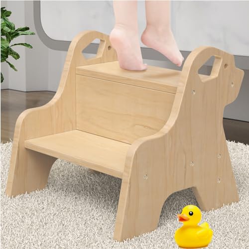 Jemyda - كرسي صغير للحمام بدرجتين للأطفال من جيميدا، كرسي صغير لحوض الحمام، كرسي أطفال غير قابل للانزلاق للتدريب على استخدام التواليت، كرسي صغير متين وقوي للمطبخ (خشبي)